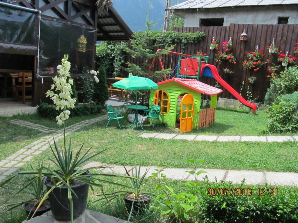 Dining room situat la parterul casei, are o capacitate de 12 locuri, cu bucatarie open-space si dotata cu accesorii necesare ce va stau la dispozitie : vesela, tacamuri, cuptor cu microunde, , plita pe gaz (numai pentru preparate usoare : ceai ,cafea incalzit alimente), filtru si expresor de cafea ,prajitor de paine. Pentru mancaruri mai grele : ciorbe, prajeli si altele exista in foisor un aragaz cu cuptor pe butelie. Camerele foarte spatioase, sunt dotate cu grup sanitar propriu, paturi mari si relaxante, smart-tv cu televiziune prin cablu, frigider in fiecare camera, acces internet wireless, canapele extensibile la cerere contra cost in fiecare camera, parcare proprie gratuita in limita disponibilitatilor ,supravegheata video, 3 locuri ,foisor inchis, gratar traditional. Centrala termica proprie asigura si furnizeaza non-stop caldura si apa calda. Nu se accepta animale de companie. Nu se fumeaza in interior. Se poate fuma pe balcoane si in foisor